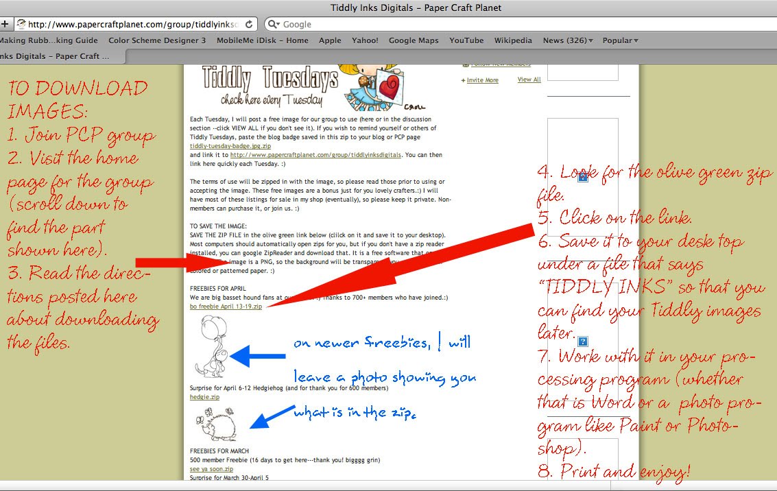 I have had a couple of questions about how to download the zip files with the free images, so I thought I would post a little visual tutorial for those of us (like moi’) who need a picture. Click on the image to make it a bit bigger.