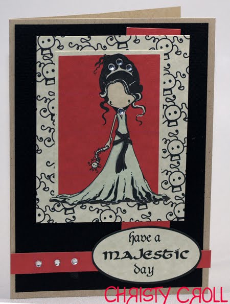 Oh wow she just went on my wish list, she is awesome!! And I love that goth paper you added to your card. Oh man I am loving your line so far, this is really wonderful!!!