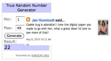Two winners were chosen from my blog comments: