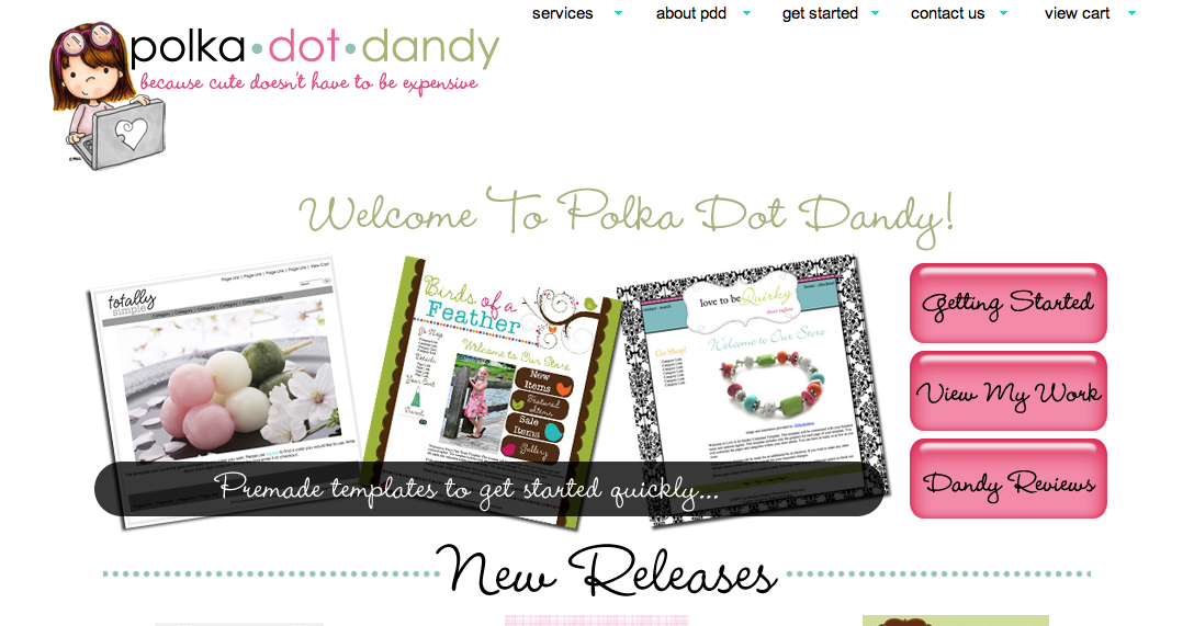 Over the past few months, I have had the pleasure of working with Michelle of Polka Dot Dandy in designing my shop and I was never dissapointed with her work. She hasn’t had it easy the past few months and yet she remained lovely and professional. She is eagerly rebuilding her health, life, and website. 🙂 Go check out her cute site and all her lovely designs. 🙂 I am happy to say that the mini-Michelle in the corner is one of my line drawings…hehe. The rest of the goodness is all Michelle’s. 🙂