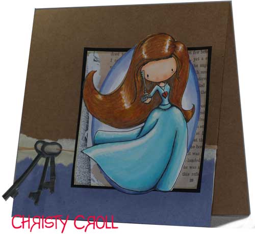 In my office, my camera is on a tripod about 3 feet from my desk edge, usually set on a timer, and set on the macro setting. My camera is set about 20 degrees above (angled to) the card and I have two light sources. This photo was taken sitting in the window of my office on my phone…forgive my breaking all of the following tips. I only have the one camera–currently on the tripod. I use an Olympus E-500 DSL with an additionally purchased macro lens. My camera is at least 5 years old, but it happily takes its photos anyway. 🙂