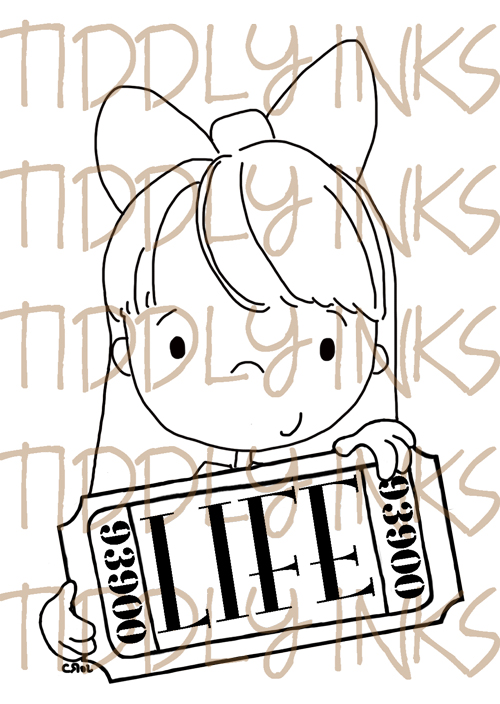 This is a new image based on a story told by a friend about her grandson. He was about 3, I think, when he declared to his mother that ““Ou need to wisten to me. Dis is not a game. I a person. I got my life and a ticket.” Is that not the cutest thing???? I laughed so hard and got an instant image—so thus we now have “Ticket to My Life”…which works for so many other things too. LOL