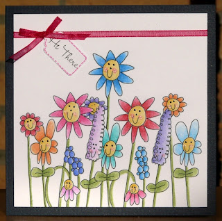 I have the biggest grin on my face this morning. 🙂 A few weeks ago I showed you a picture of a flower garden my daughter drew and that I had turned into a digi….Well, this is what Larissa did with that stamp this morning…..Is it not adorable? Thanks for making my day start spectacularly well, Larissa! 🙂