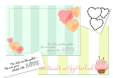 I combined several sewing digis into two sets with colored notecards and digis in a set.