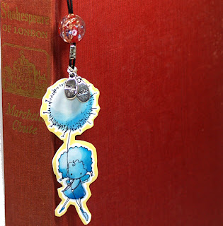 Our new challenge this week is to make a bookmark and I made a funky little bookmark out of Shrinky Dinks using the new Dandy-lion Pixie image. Just google Shrinky Dinks and you will find all sorts of lovely ways to use this fun plastic paper…you can purchase printable Shrinky Dinks now and that is what I did here…I colored it in my computer, printed it, cut it out, and then shrunk it. I printed it at about 8 inches and it shrunk to about 2 inches….Then I added some cord and beads to finish it off.