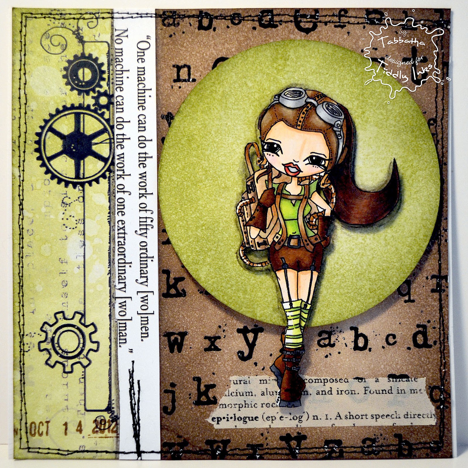 Welcome to our Tiddly Thursday Throwback. Today, our wonderful NEW design team member, Tabbatha will be sharing with you a gorgeous creation. First, let’s talk about the punkeriffic image she used. Steampunk is a huge trend in the crafting world and has been for some time. For those of you that are scratching your head and saying Steampunk?
