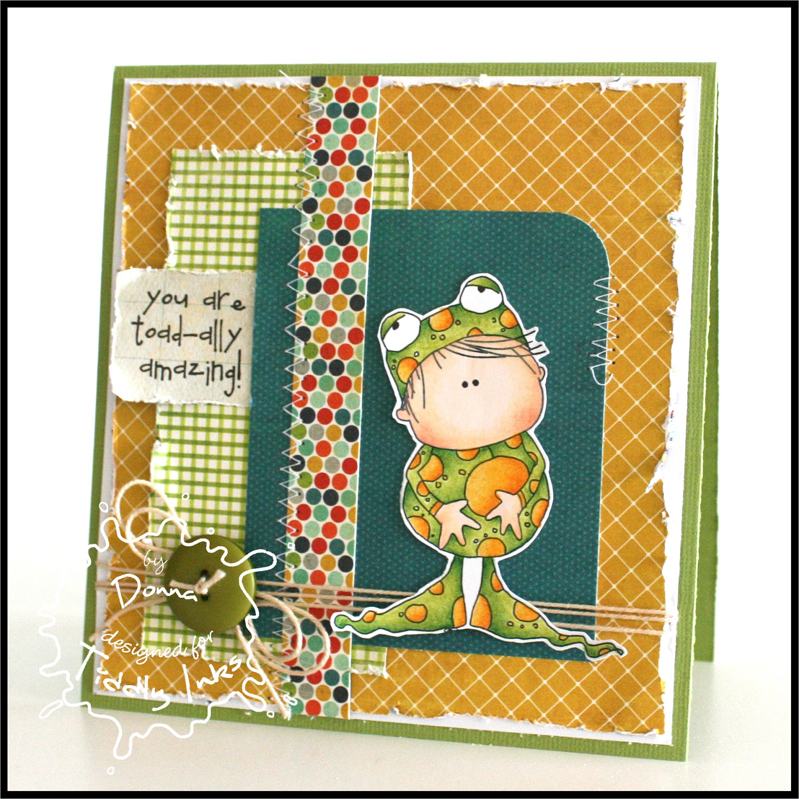 Yay! Thursday which means another Throwback here at Tiddly Inks! We love to show off the older Tiddly Ink images every week and today design team member Donna will WOW you with her sweet creation using one of the sweet little images called Little Hopper – Toadally Amazing. I have a number of friends that request boy images over and over and a number of places just don’t carry to many cute boy images. If you are one of those people then this image is for you! Check out Little Hopper: