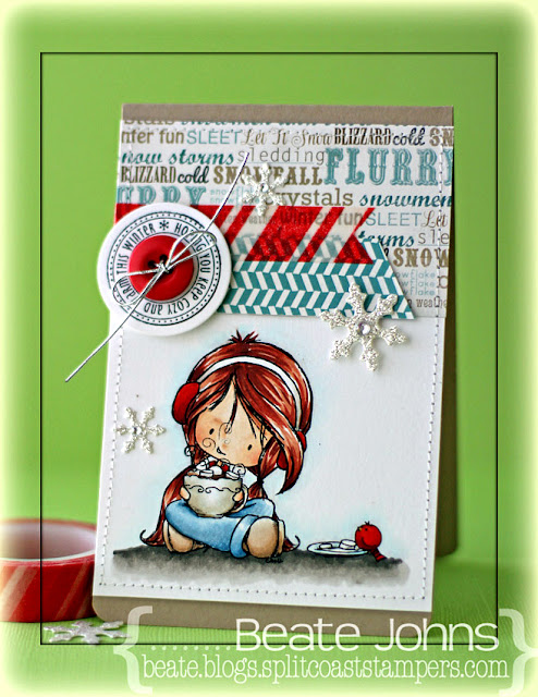 Love it, Beate! I absolutely adore your clean and simple style where every embelishment pops out great! Love the washi tape as well 🙂 It's great having you as a guest designer 🙂