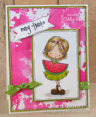 Thursday means a THROWBACK here at Tiddly Inks and we have a wonderful creation to share with you today from the lovely NEW team member Jeanne of Inky Paws. Today, she used the adorable Anna Belle Sweetness along with a fabulous sentiment from the Bloom Beautifully Clear Stamp set.