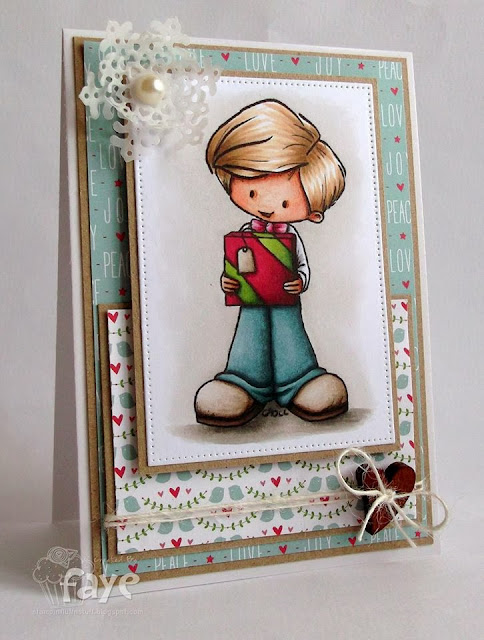 Faye created a beautiful Christmas card with adorable paper. The added heart is so cute.