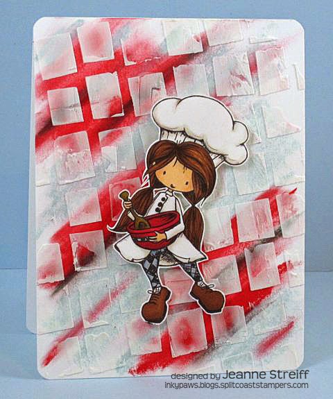 Jeanne has created a super cute card using Bake Me Some Love and added an artsy flair.
